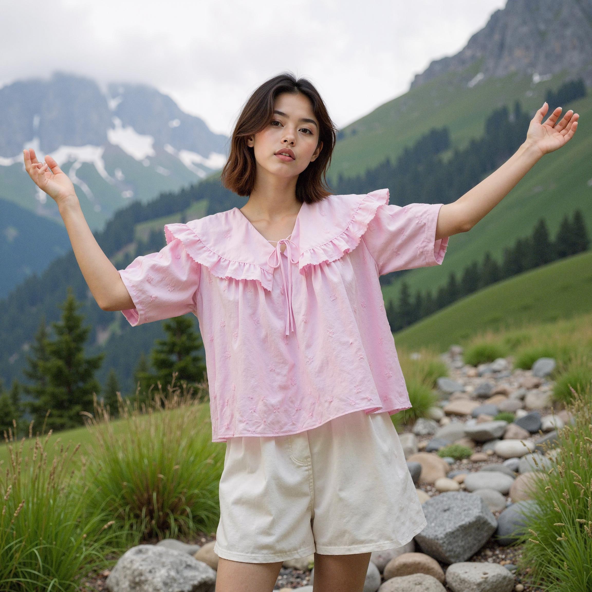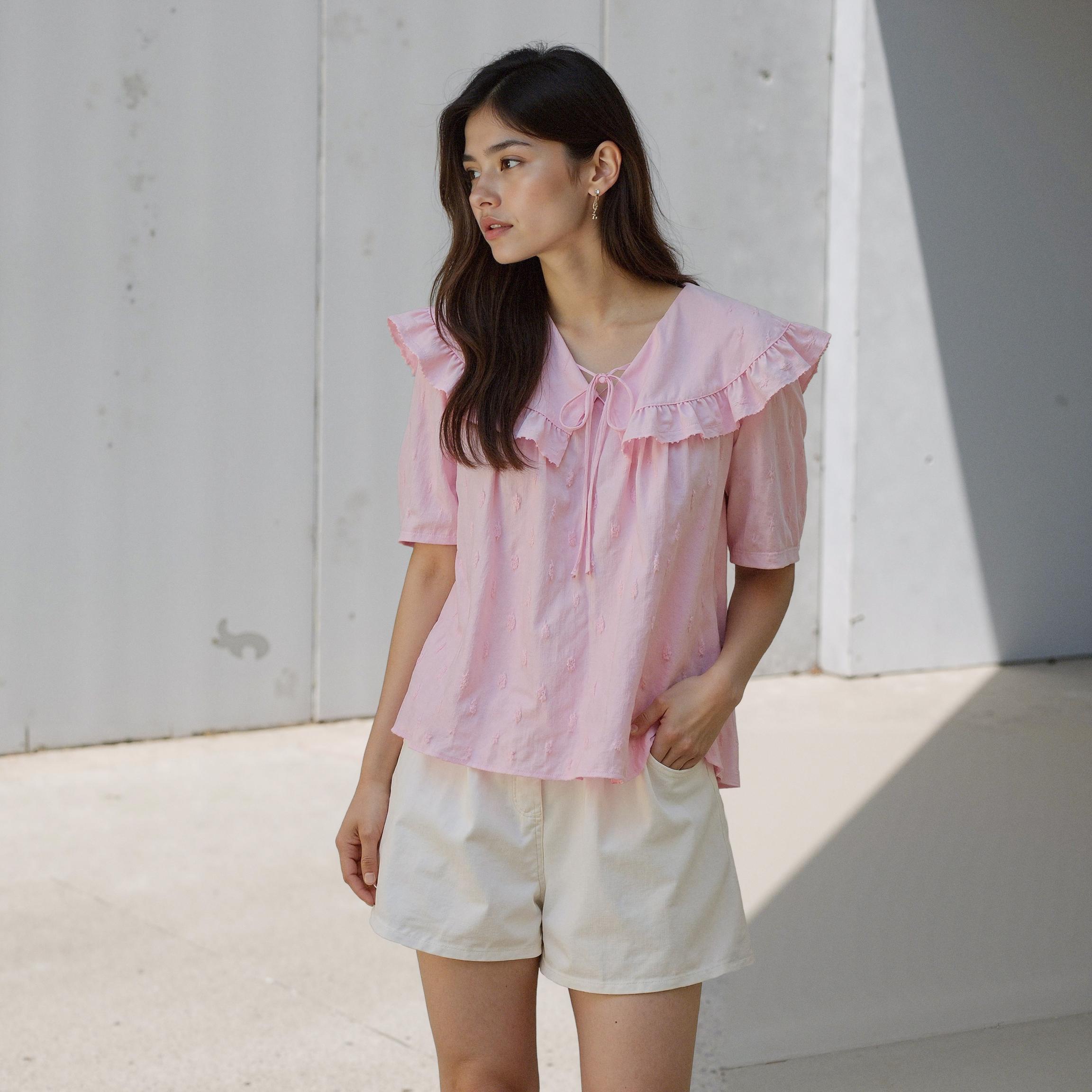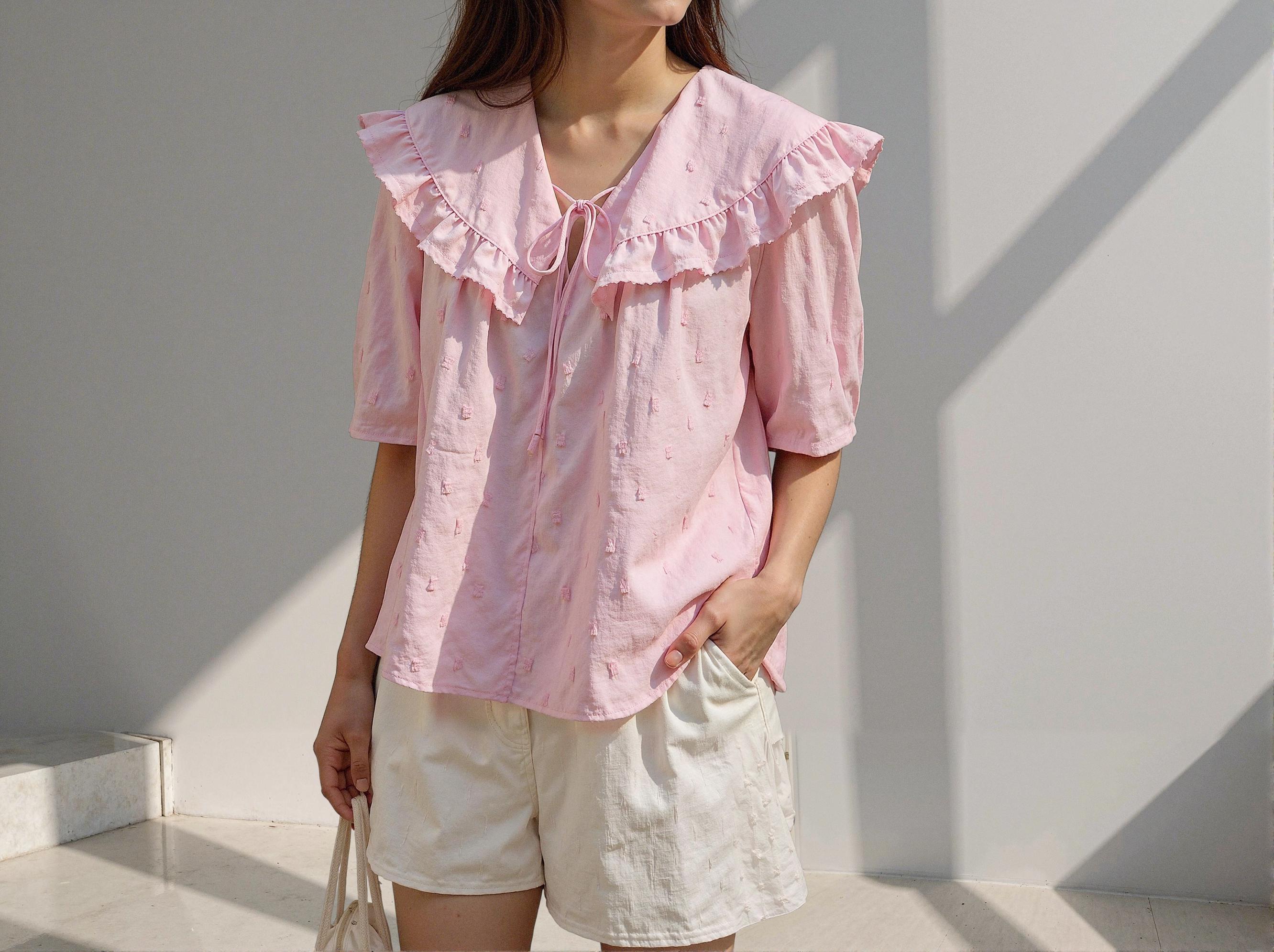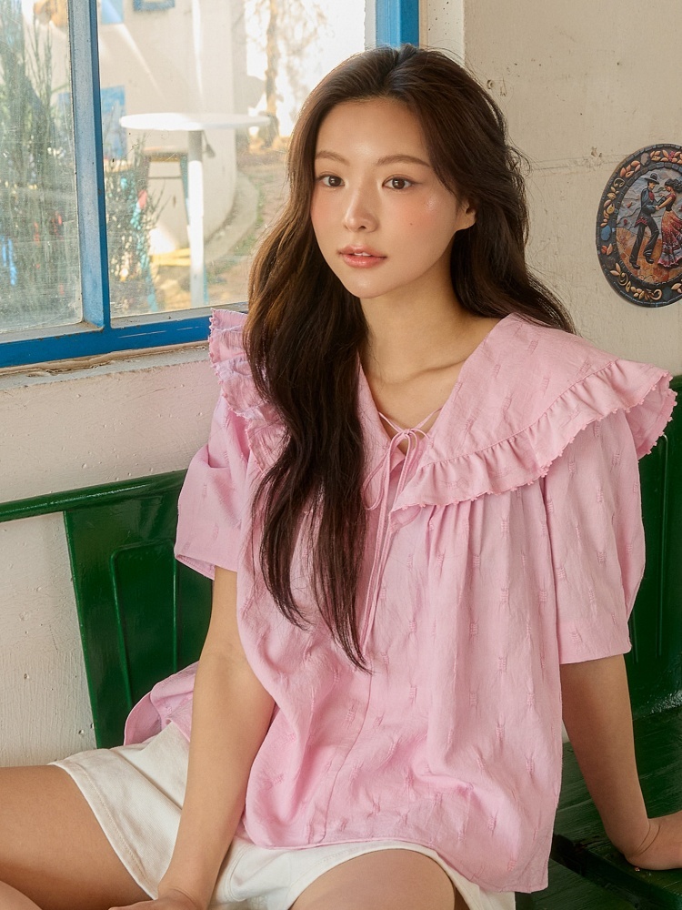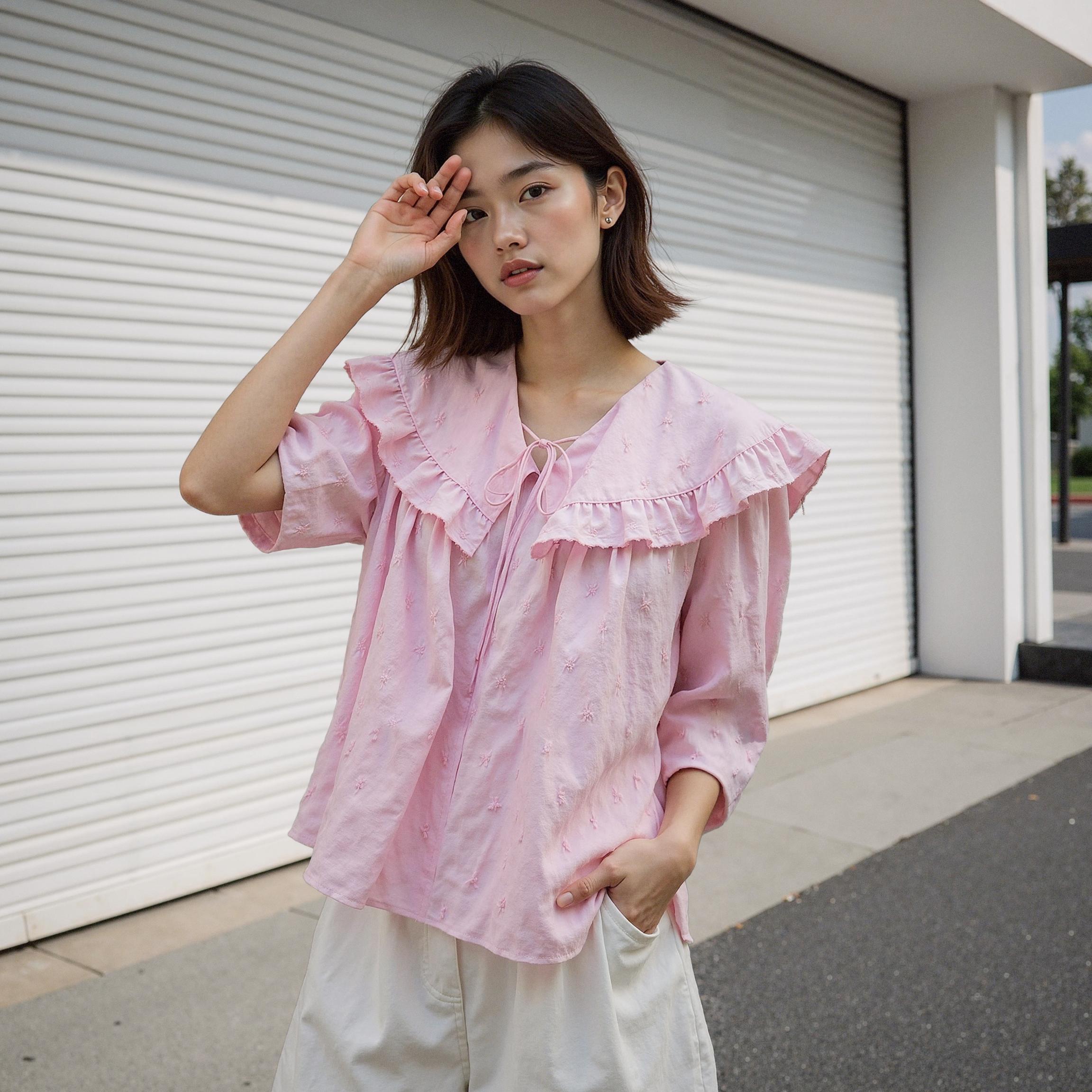For this test, I selected the Olive des Olive ruffle collar embroidered blouse. This piece, featuring romantic pink tones and delicate ruffle details, clearly embodies the brand's identity.