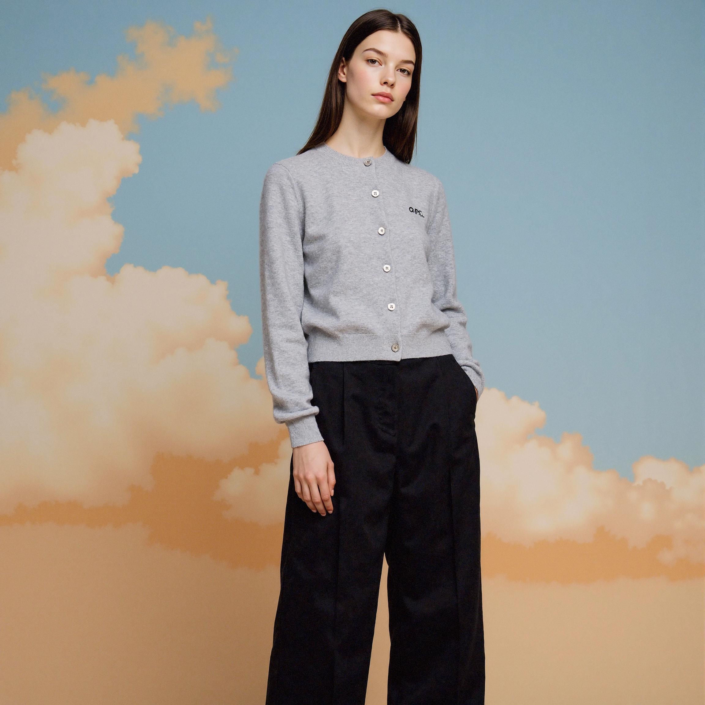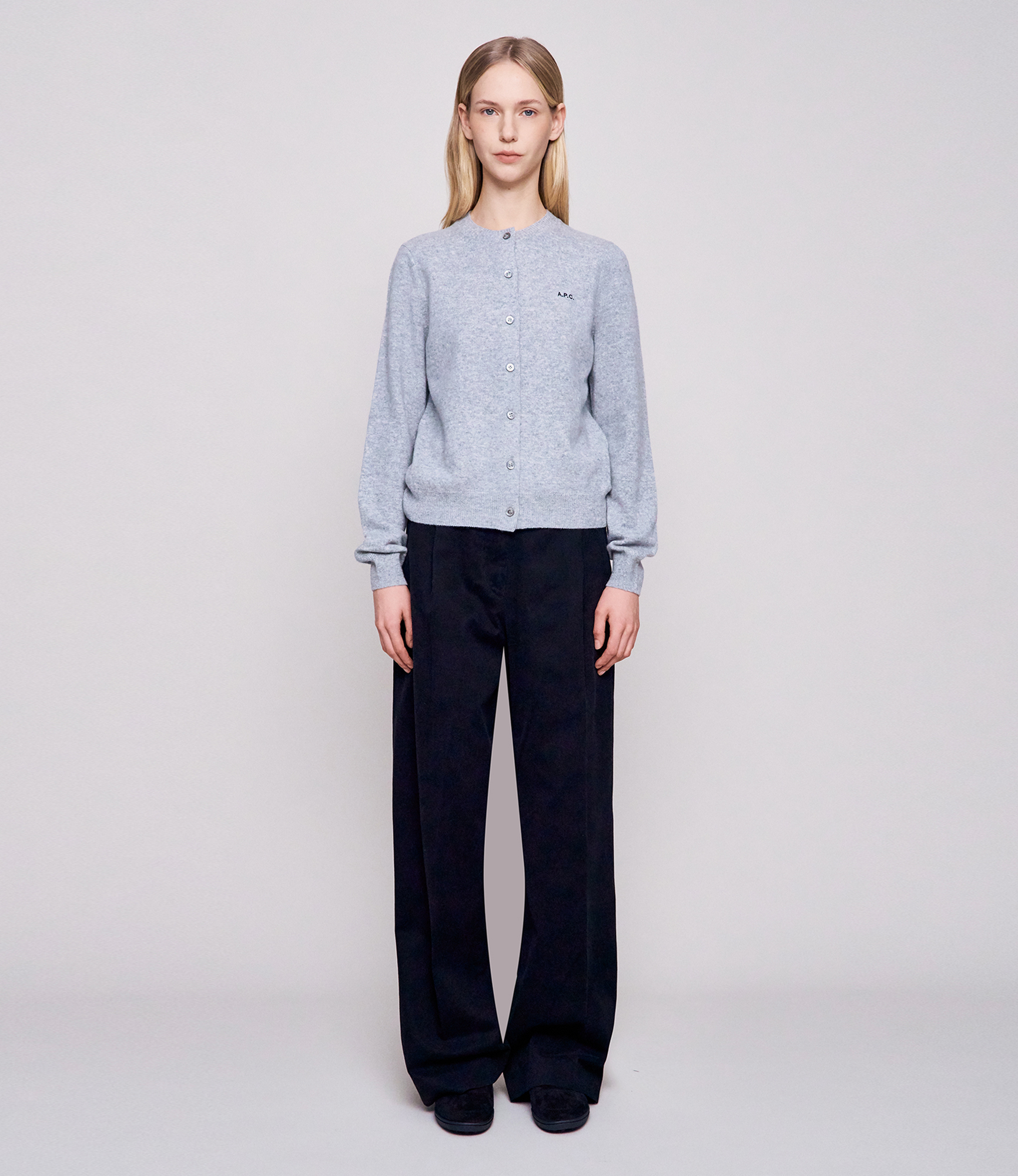 The gray cardigan introduced today faithfully reflects this philosophy. Basic colors, clean round-neck design, and the small brand logo on the chest complete an uncluttered sophistication.