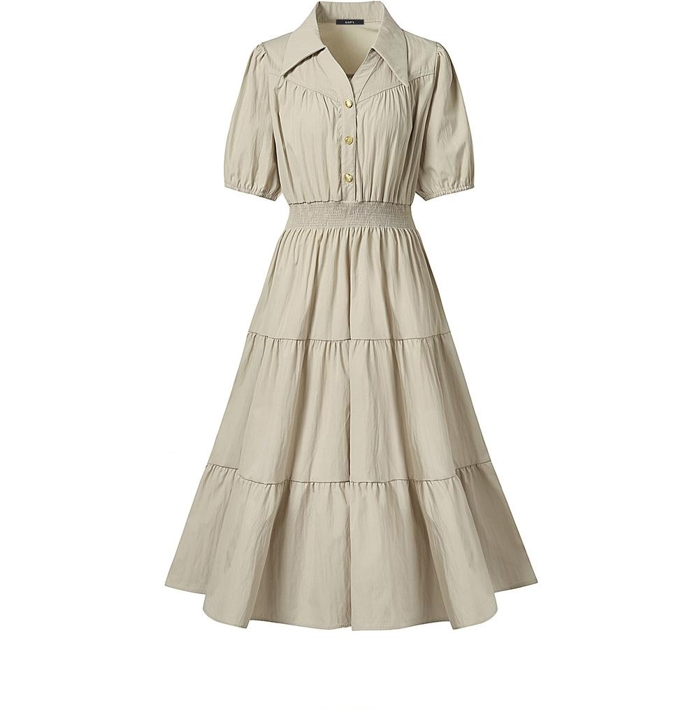 The GGPX collar dress represents a classic design with timeless appeal. Its clean collar details and the inherent elegance of the dress silhouette make it a versatile basic piece.
