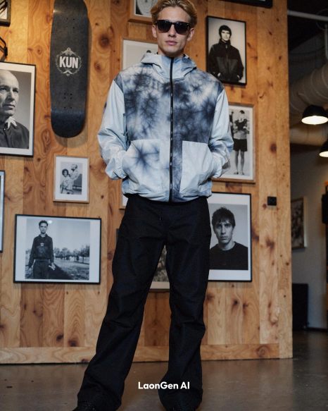 Let's look at the LaonGEN photo shoot of Greiige's tie-dye style windbreaker.