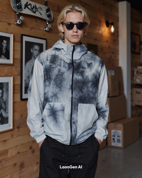 Let's look at the LaonGEN photo shoot of Greiige's tie-dye style windbreaker.