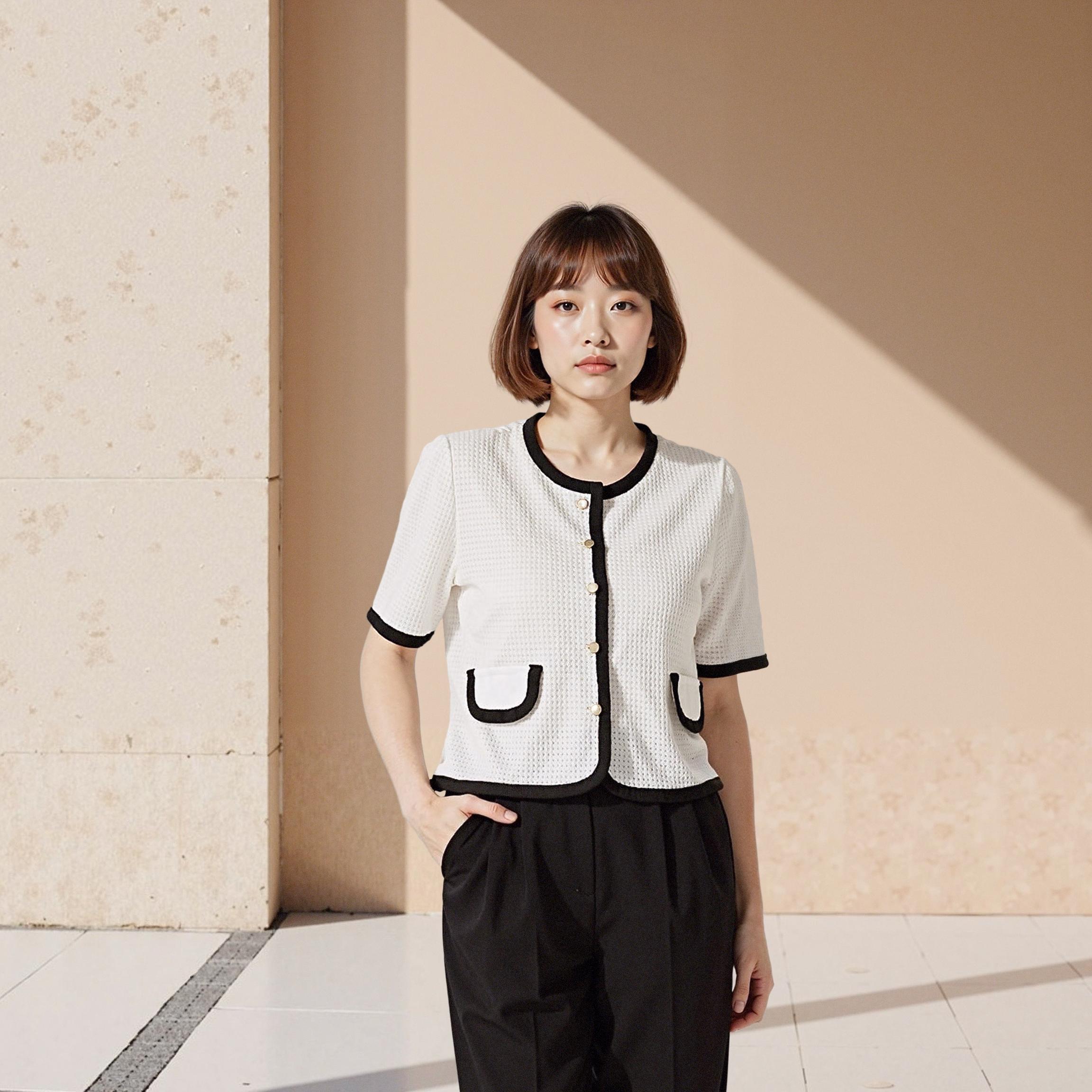 During our LaonGEN service evaluation phase, we sought to quantify the aesthetic range achievable through single-item styling variations. The NINESIX NY pocket cardigan's timeless silhouette presented an ideal candidate for cross-concept application studies.