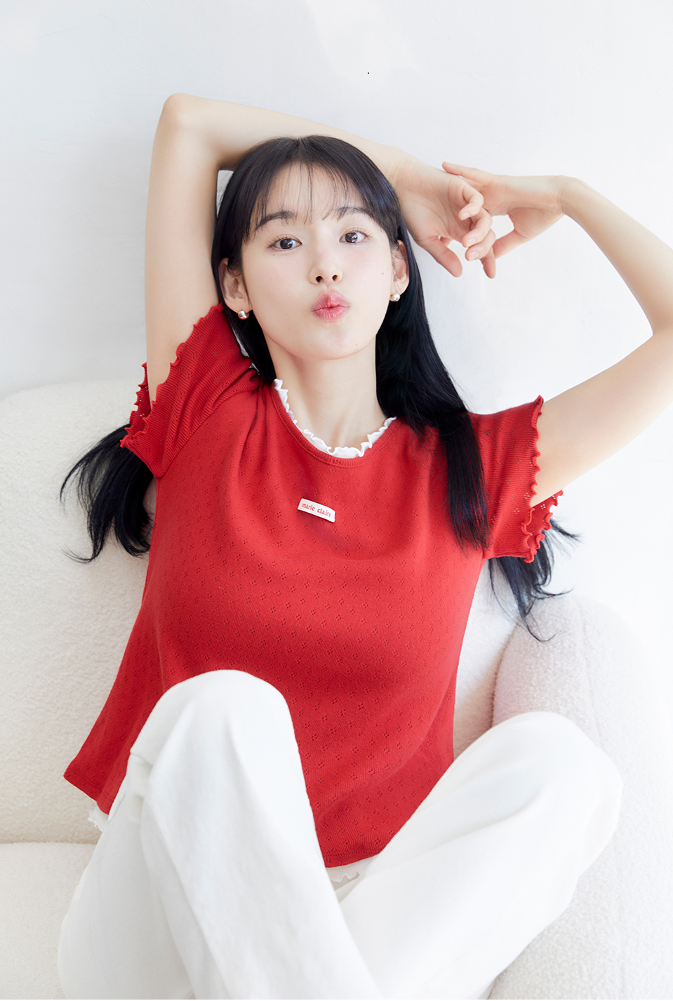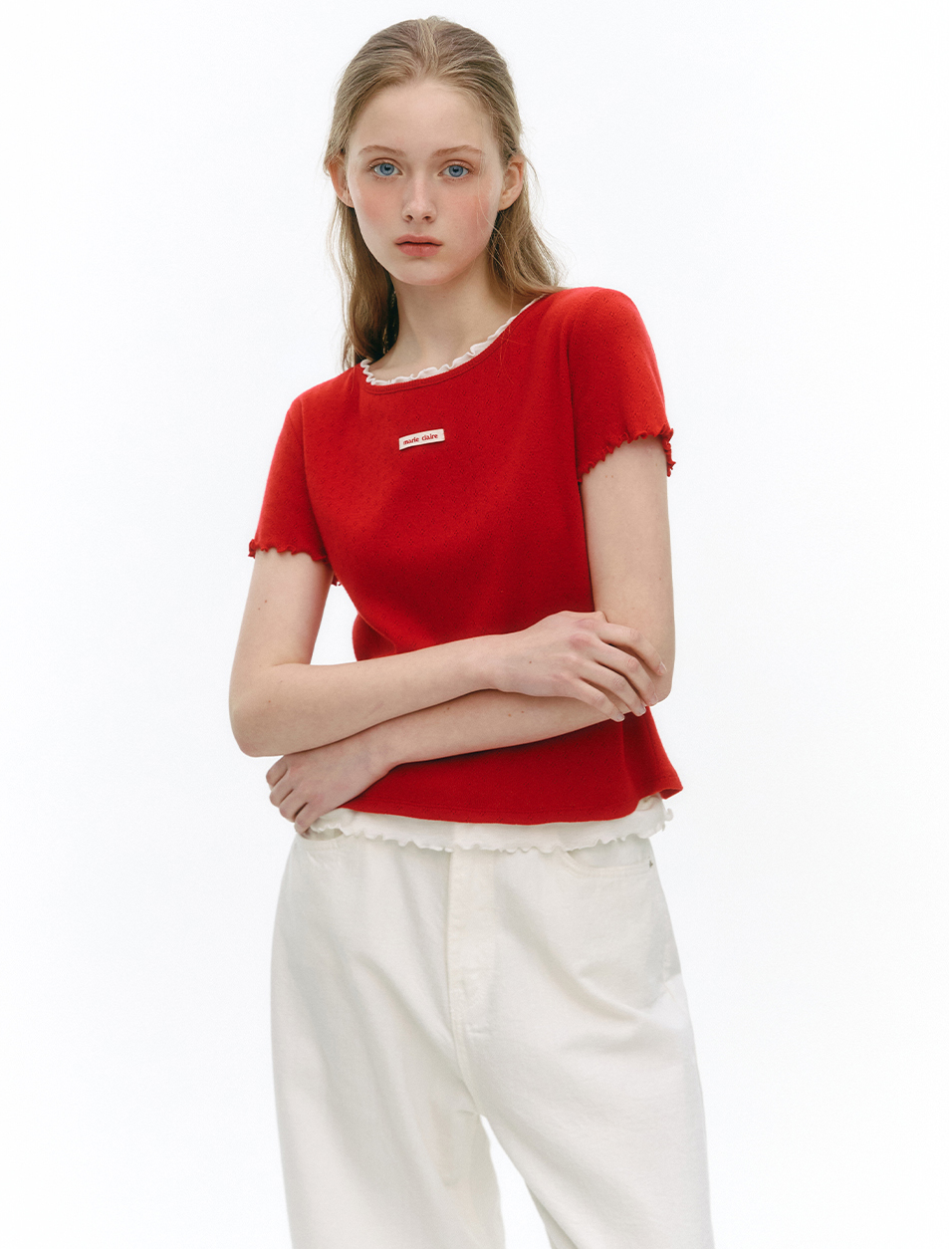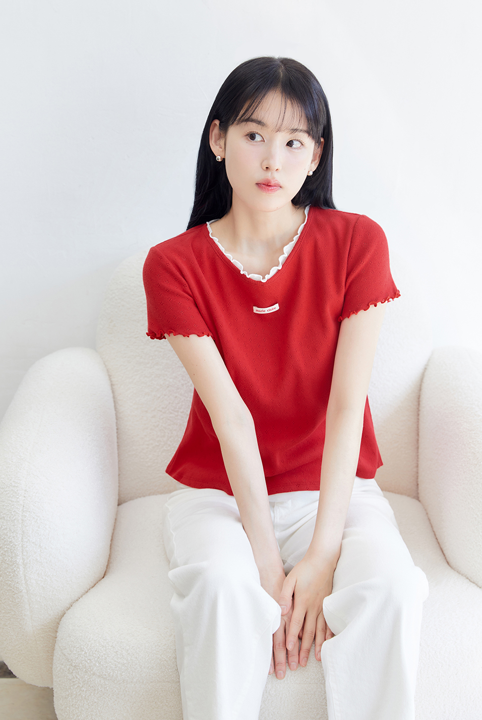 In today's saturated fashion market, basic items face increasingly fierce competition. White t-shirts, in particular, are offered by countless brands with seemingly similar designs, making it challenging for consumers to identify meaningful differences. In this competitive landscape, Marie Claire's Label Punching Layered T-Shirt demonstrates how strategic differentiation can create distinctive market positioning.