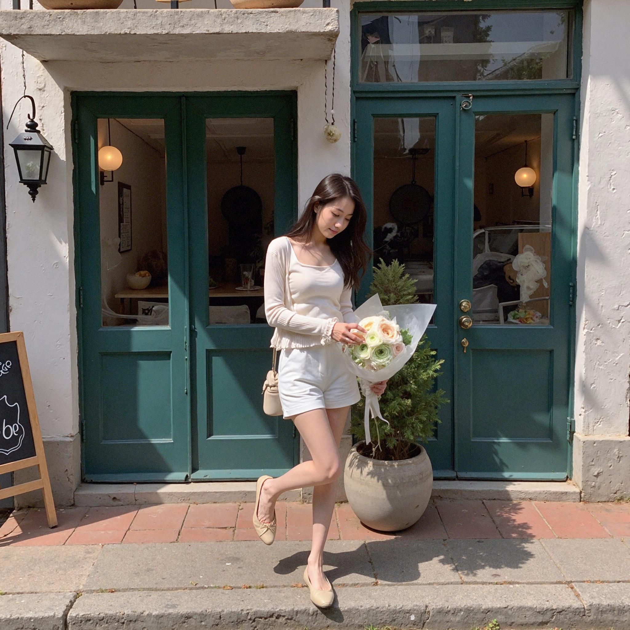 This LaonGEN lookbook centers on the feminine and elegant mood characteristic of Pervit's Pleated Frill Knit Cardigan, maximizing the product's appeal through diverse presentations.