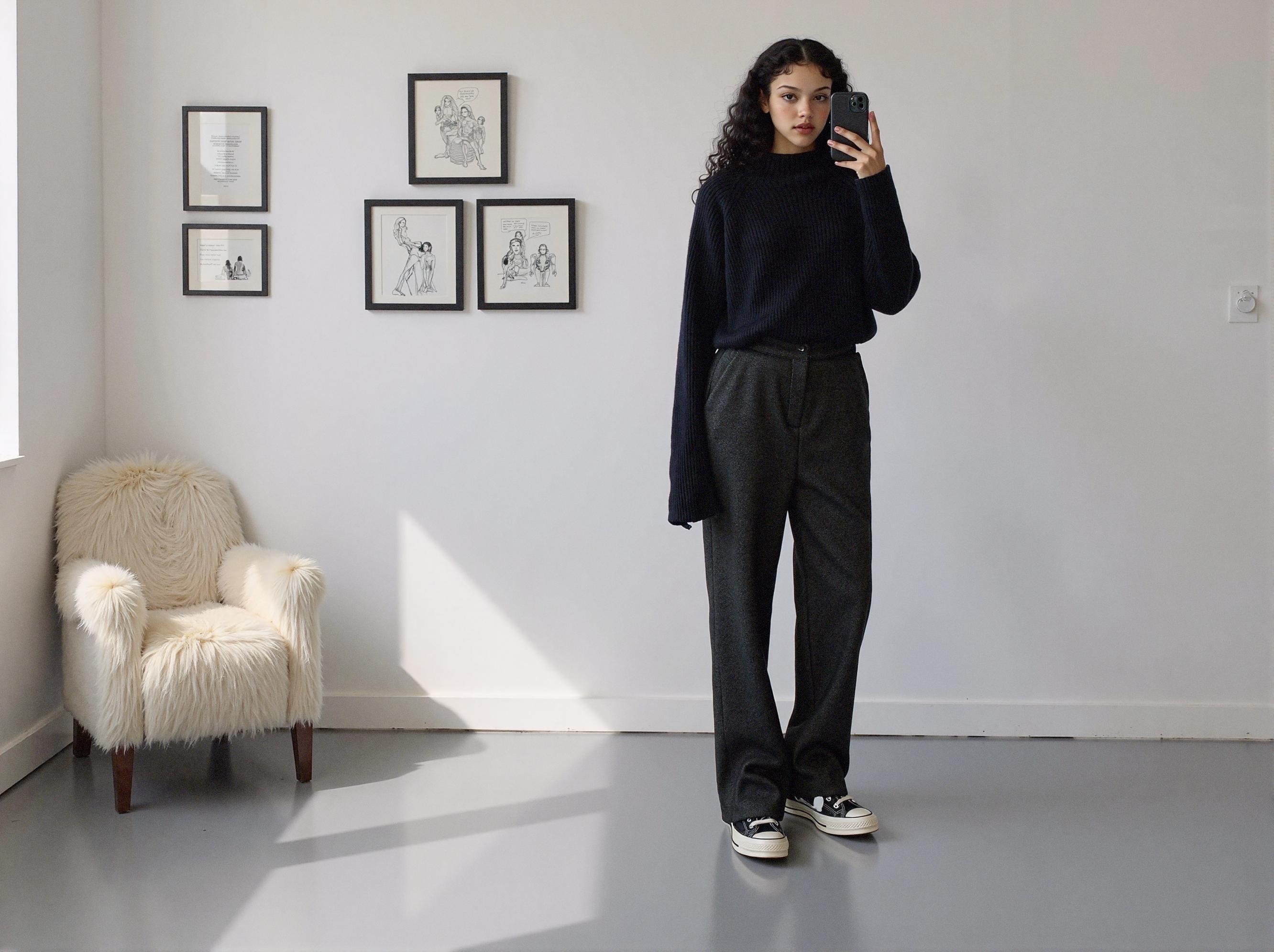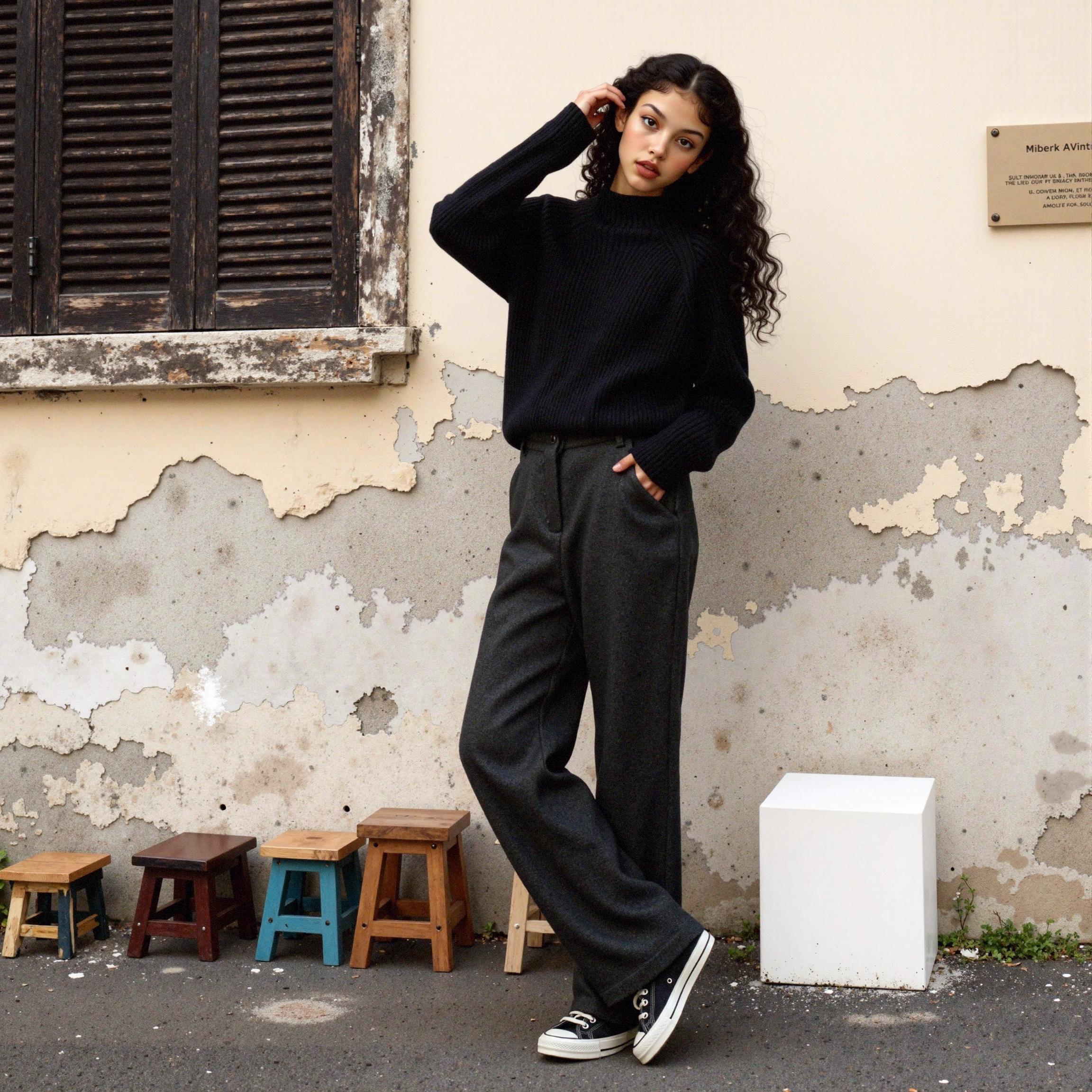 Although the lighting, environment, and camera angles are completely different, key elements remain perfectly intact: the black textured knitwear, the fit of her dark grey slacks, and the specific texture of her curly hair. While early generative AI models struggled with maintaining facial features or outfit details across different cuts—often resulting in a "morphing" effect—LaonGEN leverages its unique algorithms to lock in the character's Identity (ID).