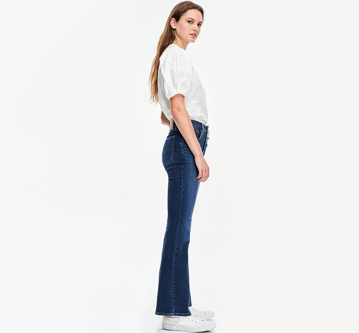 Mountain Setting Natural outdoor ambiance complemented Levi's vintage heritage beautifully. The flare silhouette appeared organically within the landscape, creating imagery indistinguishable from traditional photography.