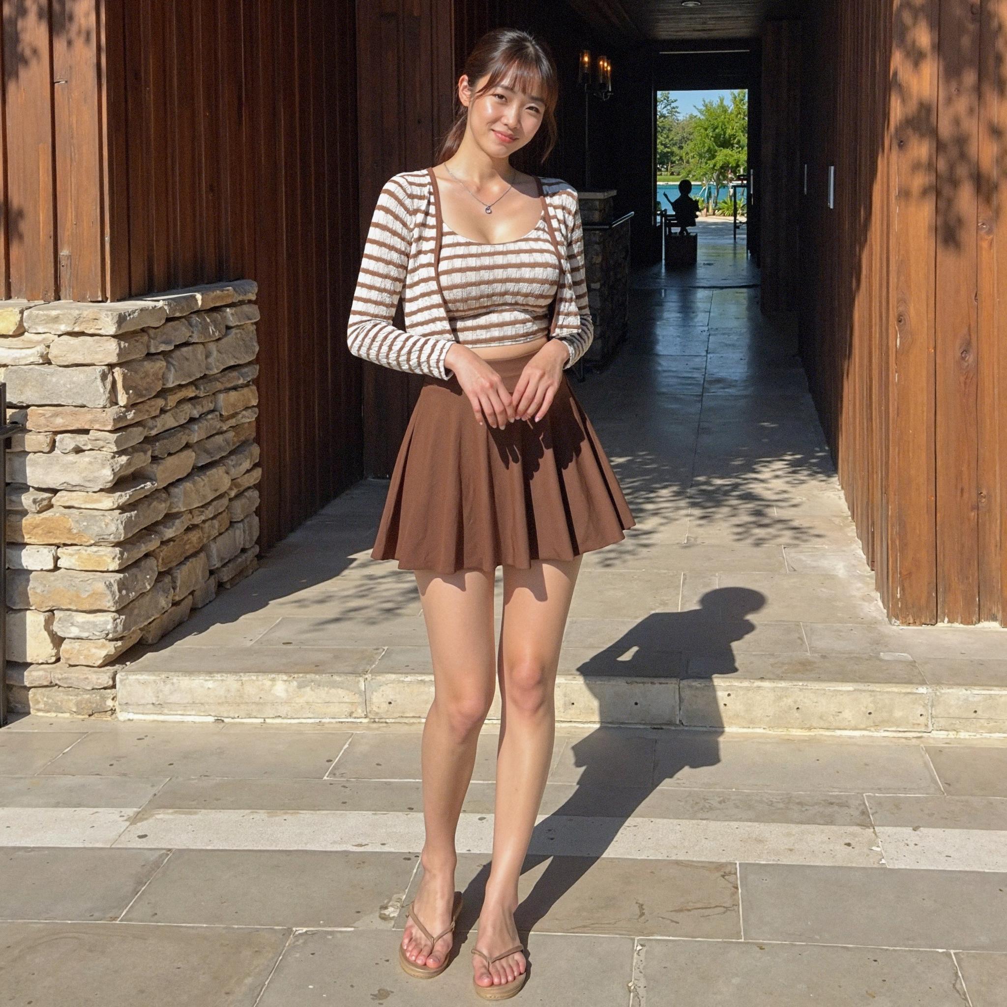 In this project, we've used LaonGEN to create a lookbook for BIKIBIKI's Almond color bikini swimsuit. Join us as we transform this sophisticated striped crop top and brown skirt bikini set into various resort moods and styles through AI-generated fashion photography.