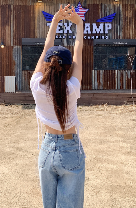 2. Product Introduction - Beto Check Shirring Shirt Blouse and Wide Denim Jeans