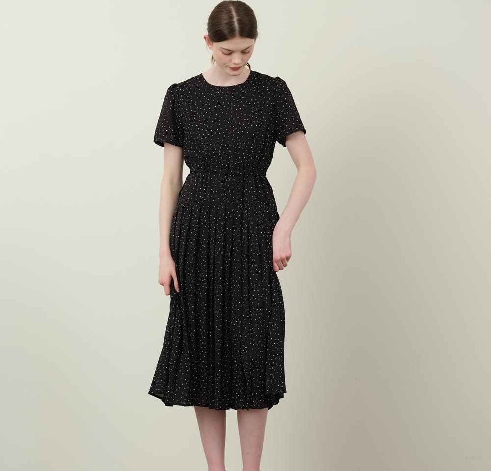 Its calm tones and balanced design allow the dress to work both as a stand-alone piece and in layered outfits.