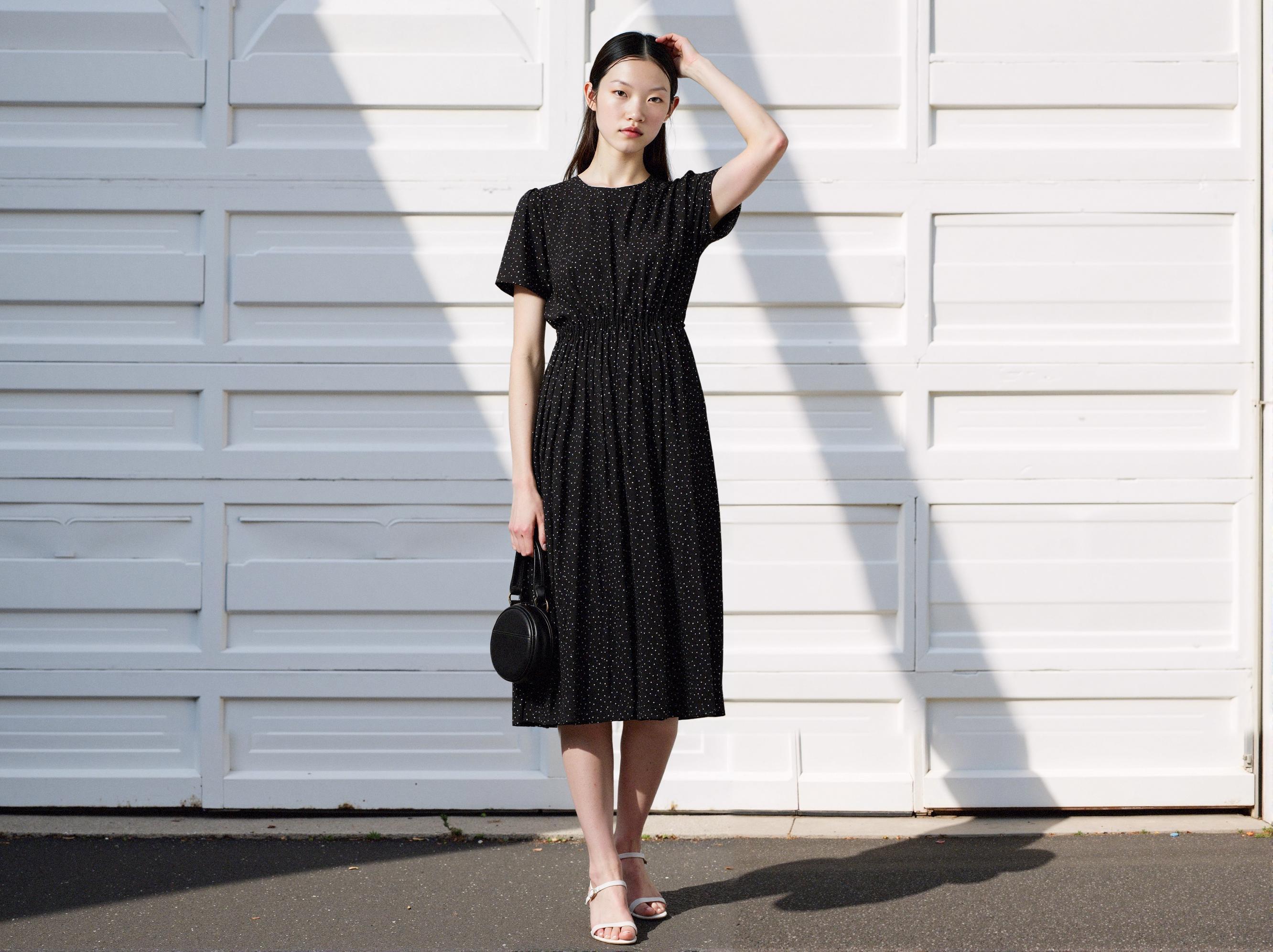 Plastic Island Pattern String Flare Long Dress — Creating an F/W Season Lookbook Without a Photoshoot Team (LaonGEN FashionAI)