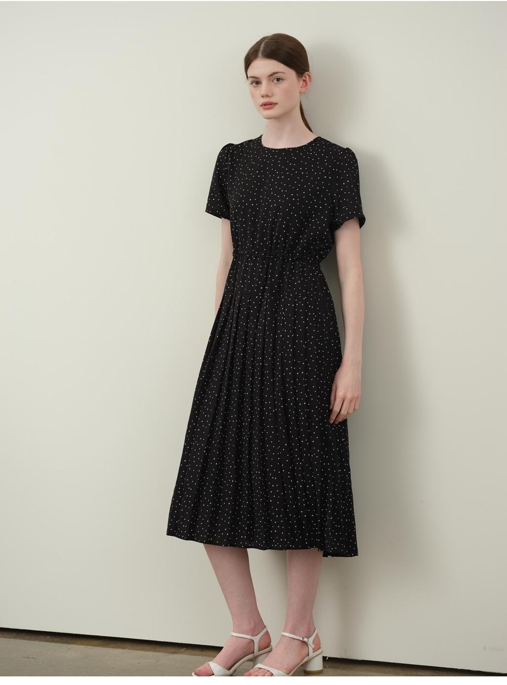 The Plastic Island Pattern String Flare Long Dress features an adjustable waist string, subtle patterns and colors, and a flowing flare silhouette, making it highly suitable for F/W styling.