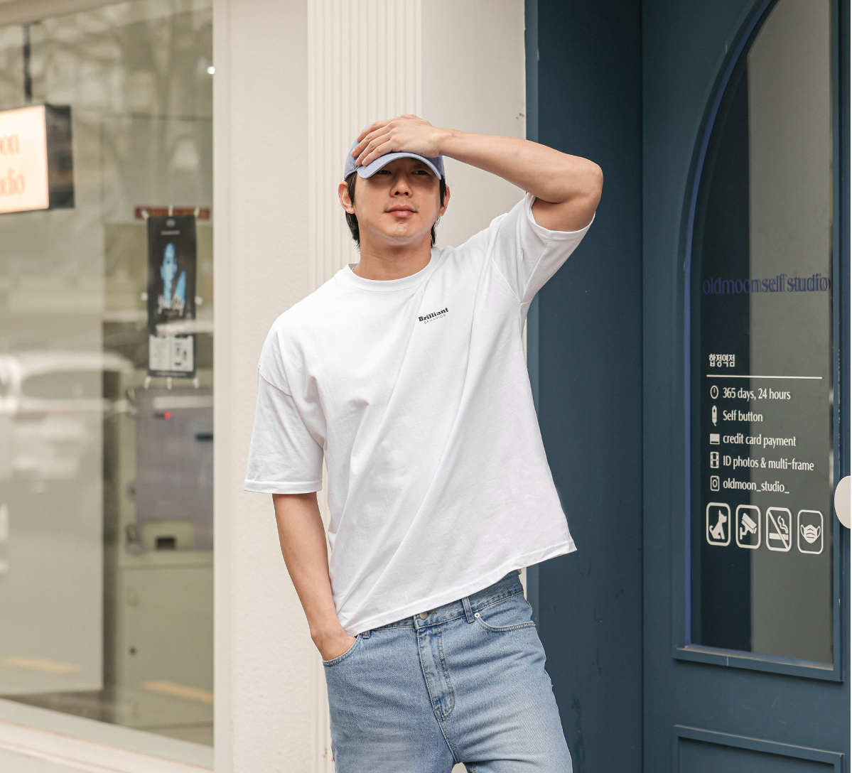 LaonGEN has selected backgrounds that complement both the characteristics of the Hamar T-shirt and each styling concept. Urban settings, natural indoor spaces, and studio-like solid color backgrounds are all utilized to effectively showcase different aspects of the product.