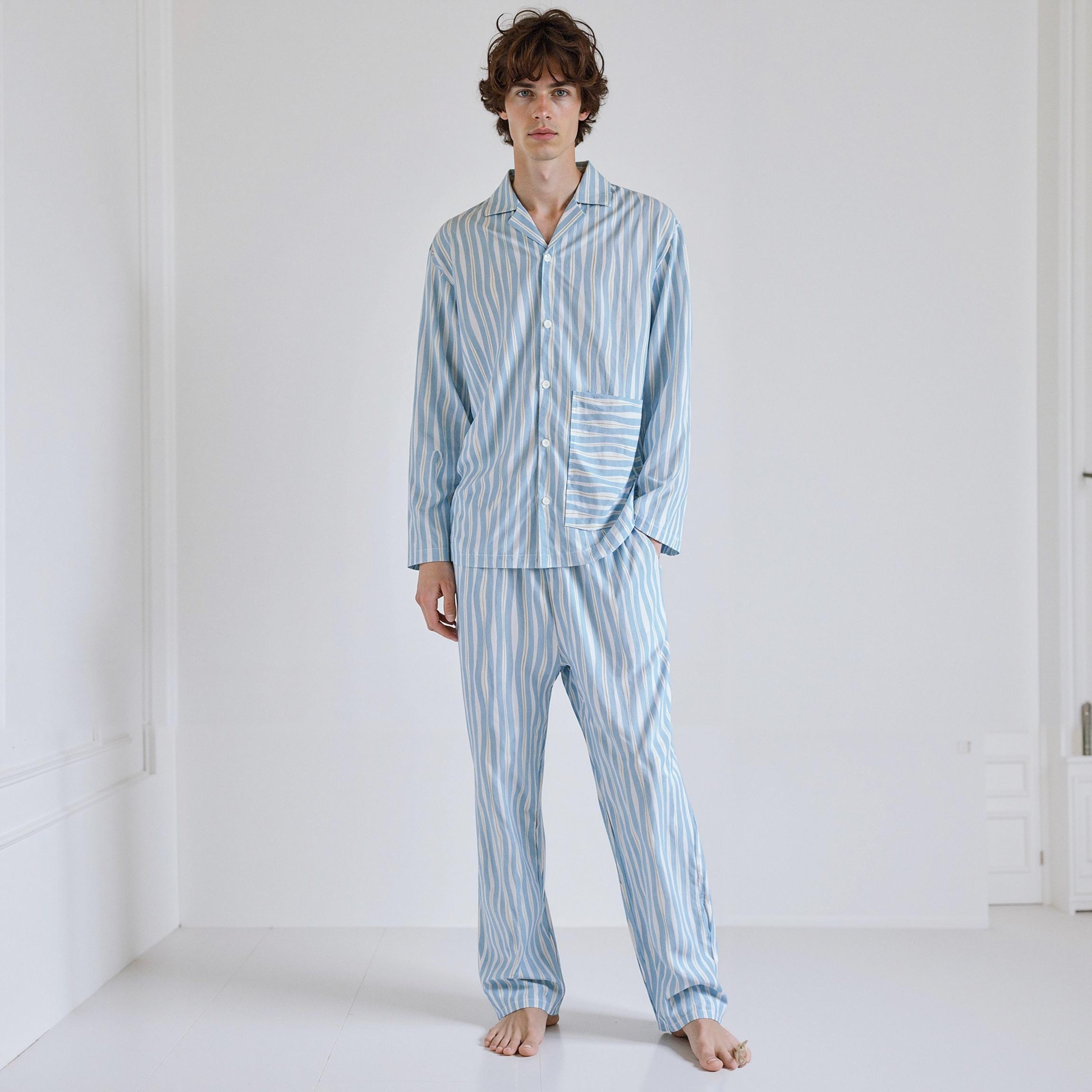 Sunday Lounge's Men's Forest Lake Pajama Long Set transcends simple sleepwear to become a lifestyle item. The calm green-toned natural patterns offer rest and relaxation to modern urbanites exhausted by city life.