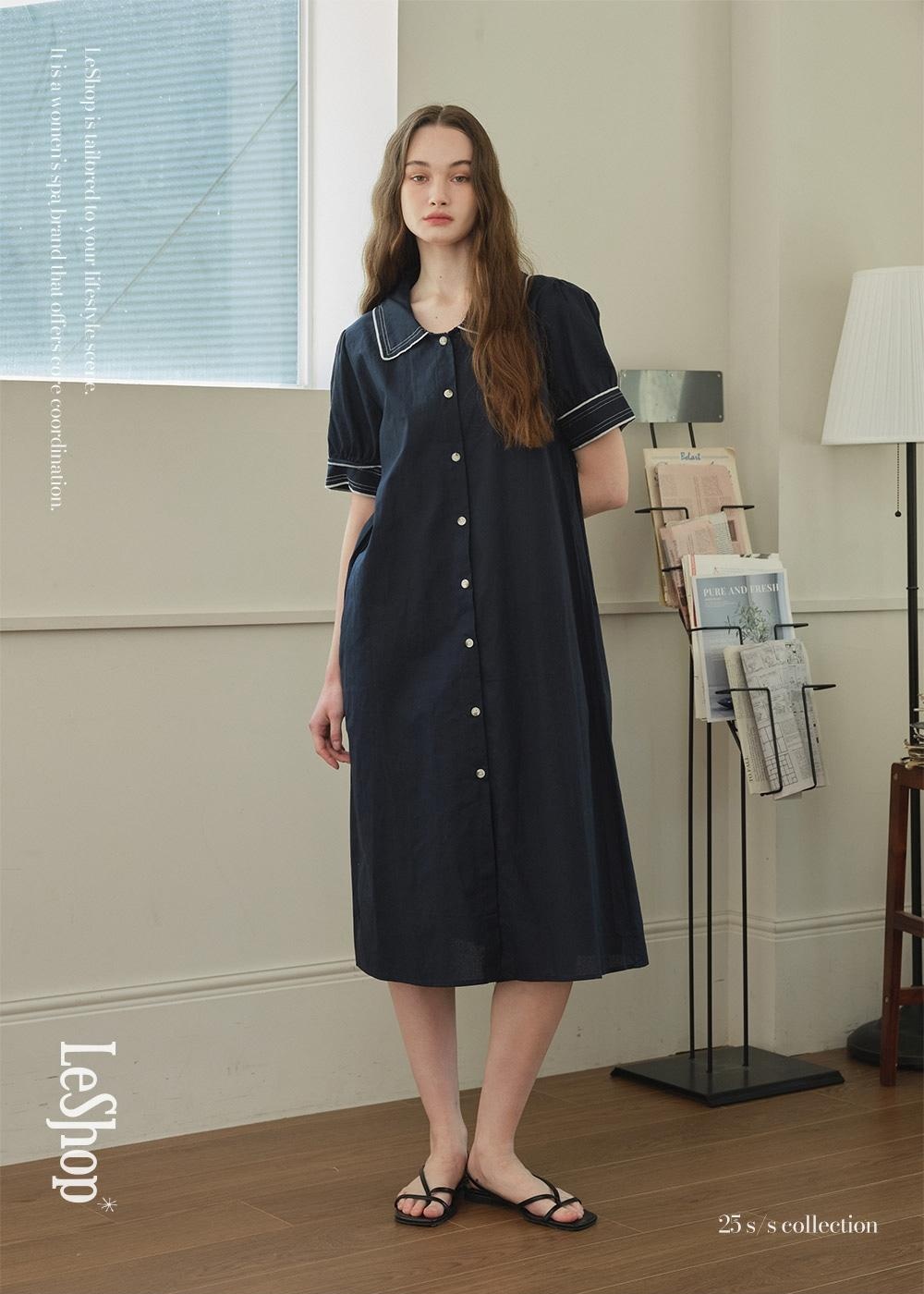 AI-generated images of LeShop's collar dress achieved quality levels nearly indistinguishable from actual photography. The deep navy color richness and crisp white piping details were accurately reproduced, confirming sufficient quality for product detail pages and social media marketing content applications.